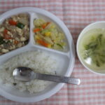 7月5日(金)給食・おやつ 公開済み: 2019年7月5日更新: 2019年7月5日作成者: ことね保育園カテゴリー: 調理室から 給食🍚🍴 ☆ごはん ☆肉団子のトマト煮 ☆根菜のきんぴら風 ☆すまし汁(白菜、人参) トマトの酸味を抑え、甘めに作りました😊 赤・黄色・緑など食欲が沸くビタミンカラー🍅🍠🥒 栄養満点✨暑い夏を乗り切ろう😆👍✨ おやつ(15🕒)✨ ☆牛乳または麦茶 ☆七夕そうめん 1年に1度の七夕です🎋 色とりどりの、カラフルそうめん💕 星形の人参が大好評⭐🥕 今日の夜、天の川が見られるかな😊🌌✨ 関連記事 11月11日(火)給食・おやつ 給食🍚🍴 ☆ごはん ☆鶏肉のオニオンソース ☆キャベツのごま和え ☆みそ汁(さつまいも、油揚げ) すりごまたっぷりキャベツのごま和え✨✨ サッと茹でたキャベツがい […] 公開済み: 2025年11月11日更新: 2025年11月11日作成者: ことね保育園カテゴリー: 調理室から 11月25日(水)給食・おやつ 給食🍚🍴 ☆ごはん ☆鮭のカレー焼き ☆白菜の洋浸し ☆スープ(キャベツ、コーン) 白菜とブロッコリーの冬野菜コンビを、コンソメ風味でサッとにました❣❣ 高野 […] 公開済み: 2020年11月25日更新: 2020年11月25日作成者: ことね保育園カテゴリー: 調理室から 11月11日(月)給食・おやつ 給食🍚🍴 ☆ごはん ☆ポーク生姜焼き ☆煮浸し ☆みそ汁(大根、ニラ) 葉物野菜、根菜がたっぷりの献立です!! 特に冬に根菜を食べることをおすすめしたいと思います🥕 根 […] 公開済み: 2019年11月11日更新: 2019年11月11日作成者: ことね保育園カテゴリー: 調理室から