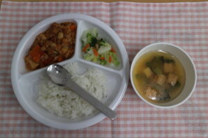 1月21日(水)給食・おやつ 公開済み: 2026年1月21日更新: 2026年1月21日作成者: ことね保育園カテゴリー: 調理室から 給食🍚🍴 ☆ごはん ☆ポークビーンズ ☆白菜ブロッコリーサラダ ☆みそ汁(厚揚げ、小松菜) 人気の献立ポークビーンズ✨✨ 今日はお残しが、な、な、なんとゼロ❣🤗💖✨ おかわりもたくさんしてくれました👦👧🎶 ありがとう~😁🎶 おやつ(🕒✨15時) ☆鮭ごまおにぎり ☆麦茶 スキムミルクを入れて炊き上げたごはんに鮭フレーク&ごまをまぜまぜ😋 パクリと大きお口で食べ進めていましたよ~😝👏 関連記事 9月26日(木)給食・おやつ 給食🍚🍴 ☆ごはん ☆豚肉と大根の煮物 ☆小松菜のごま和え ☆みそ汁(豆腐、ニラ) 高野豆腐が煮汁を上手く含んでくれ、美味しい煮物になりました🍲✨ɲ […] 公開済み: 2019年9月26日更新: 2019年9月26日作成者: ことね保育園カテゴリー: 調理室から 10月1日(水)給食・おやつ 給食🍚🍴 ☆ごはん ☆豚肉の生姜焼き ☆さつまいもと高野豆腐の煮物 ☆スープ(エノキ、豆腐) 野菜をたっぷり使った豚肉の生姜焼き✨✨ みんなパクパク食べ進めて […] 公開済み: 2025年10月1日更新: 2025年10月1日作成者: ことね保育園カテゴリー: 調理室から 10月7日(月)給食・おやつ 給食🍚🍴 ☆ごはん ☆豚肉とさつまいものケチャップ煮 ☆白菜サラダ ☆すまし汁(キャベツ、油揚げ) さつまいもの自然な甘さを活かして、砂糖不使用で煮ました🍠 ベースの味付 […] 公開済み: 2019年10月7日更新: 2019年10月7日作成者: ことね保育園カテゴリー: 調理室から