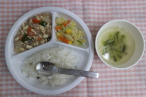 1月27日(火)給食・おやつ 公開済み: 2026年1月27日更新: 2026年1月27日作成者: ことね保育園カテゴリー: 調理室から 給食🍚🍴 ☆ごはん ☆麻婆大根 ☆白菜コーンの中華サラダ ☆スープ(わかめ、玉ねぎ) 大根に味が染み、美味しい麻婆大根でした🥰 旬の大根がたっぷり食べられる献立です✨✨ おかわりもたくさんしてくれました👦👧🎶 おやつ(🕒✨15時) ☆ひじきごはん ☆麦茶 醬油の味付けがちょうど良く、みんなパクパク食べてくれました🤗🎶✨ ごちそうさま~! 関連記事 10月28日(水)給食・おやつ 給食🍚🍴 ☆ごはん ☆照り焼きチキン ☆洋浸し ☆スープ(玉ねぎ、人参、大根葉) カレー風味の洋浸しです❣❣✨ 今日は白菜を使いましたよ~&#x […] 公開済み: 2020年10月28日更新: 2020年10月28日作成者: ことね保育園カテゴリー: 調理室から 6月5日(金)給食・おやつ 給食🍚🍴 ☆ごはん ☆豆腐のうま煮 ☆白菜と麩のサラダ ☆みそ汁(かぼちゃ、小松菜) 豆腐に薄っすらとトロミをつけ、のどごしのよい主菜にしました✨ ごはんにかけて食べても、 […] 公開済み: 2020年6月5日更新: 2020年6月5日作成者: ことね保育園カテゴリー: 調理室から 7月27日(火)給食・おやつ 給食🍚🍴 ☆ごはん ☆鮭の和風あんかけ ☆かぼちゃとレーズンのサラダ ☆スープ(豆腐、コーン) 鮭に脂がのっていて、子どもたちにも食べやすく好評でした❣❣&#x […] 公開済み: 2021年7月27日更新: 2021年7月27日作成者: ことね保育園カテゴリー: 調理室から