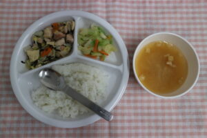 10月27日(月)給食・おやつ 公開済み: 2025年10月27日更新: 2025年10月27日作成者: ことね保育園カテゴリー: 調理室から 給食🍚🍴 ☆ごはん ☆鶏肉とひじきの旨煮 ☆キャベツじゃこ和風サラダ ☆みそ汁(玉ねぎ、油揚げ) トロミが丁度良く、ごはんに絡みやすかったね🤩 あんかけごはんのようで美味しそう~🤗🎶✨ 高野豆腐に味がよ~く染み込んでいていいお味でした~ おやつ(🕒✨15時) ☆ミルクシュガートースト ☆麦茶 スキムミルクがたっぷり入ったミルキーペーストを塗ったパンですよ~🍞✨ カルシウムupも期待できますよ~ 関連記事 6月27日(木)給食・おやつ 給食🍚🍴 ☆ごはん ☆豆腐のうま煮 ☆かばちゃサラダ ☆すまし汁(玉ねぎ、小松菜) 今日の給食は、栄養満点のヘルシーメニューです😄 豆腐と野菜がいっぱいのうま煮 […] 公開済み: 2019年6月27日更新: 2019年6月27日作成者: ことね保育園カテゴリー: 調理室から 8月26日(木)給食・おやつ 給食🍚🍴 ☆ごはん ☆ポークビーンズ ☆高野豆腐ときゅうりのサッパリ和え ☆スープ(小松菜、エノキ) 酸味を控えめにして作ったサッパリ和え✨🎶 歯応えも楽し […] 公開済み: 2021年8月26日更新: 2021年8月26日作成者: ことね保育園カテゴリー: 調理室から 9月8日(水)給食・おやつ 給食🍚🍴 ☆ごはん ☆豆腐ミートローフ ☆キャロットサラダ ☆みそ汁(小松菜、じゃがいも) チーズが入ってコクがあり、子どもたちの食べるスピードもとても早い献立でした❣&#x […] 公開済み: 2021年9月8日更新: 2021年9月8日作成者: ことね保育園カテゴリー: 調理室から