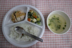 10月28日(火)給食・おやつ 公開済み: 2025年10月28日更新: 2025年10月28日作成者: ことね保育園カテゴリー: 調理室から 給食🍚🍴 ☆ごはん ☆野菜つくね ☆小松菜の煮浸し ☆スープ(大根、ニラ) 野菜たっぷり!みんなニコニコで食べている姿が見受けられました~🤗🎶✨ 今日は全員のお皿がピカピカ❣🤗💖✨ たくさん食べてくれましたよ~😝👏 おやつ(🕒✨15時) ☆ゆかりごまおにぎり ☆麦茶 プチプチっとごまの食感がイイ感じ~ サッパリ風味で美味しかったね~😋 関連記事 4月1日(月)給食・おやつ 給食✨ ☆焼きそば ☆食パン🍞 ☆バナナ🍌 ☆スープ(玉葱・えのき) ☆麦茶 子どもたちの大好きな焼きそばが登場💛 大喜びで頬張っていました&# […] 公開済み: 2019年4月1日更新: 2019年4月1日作成者: ことね保育園カテゴリー: 調理室から 9月21日(木)給食・おやつ 給食🍚🍴 ☆ごはん ☆ハンバーグ ☆白菜の海苔ナムル ☆すまし汁(豆腐、小松菜) お子様ランチみたいな献立✨✨ 大きなお口でいただきま~す😁 […] 公開済み: 2023年9月21日更新: 2023年9月21日作成者: ことね保育園カテゴリー: 調理室から 12月10日(火)給食・おやつ 給食🍚🍴 ☆ごはん ☆チキンハンバーグ ☆切干大根とじゃこのナムル ☆スープ(小松菜、厚揚げ) 旨みがギュッと詰まった切干大根をサッパリナムルにしました🤩✨ […] 公開済み: 2024年12月10日更新: 2024年12月10日作成者: ことね保育園カテゴリー: 調理室から