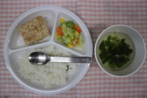 10月17日(木)給食・おやつ 給食🍚🍴 ☆ごはん ☆チキンハンバーグ ☆白菜とひじきのサラダ ☆みそ汁(厚揚げ、小松菜) シャキシャキ食感のサラダが美味しい~🥗✨ しっかりと嚙むことがで […] 公開済み: 2024年10月17日更新: 2024年10月17日作成者: ことね保育園カテゴリー: 調理室から