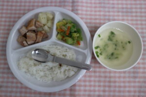 6月17日(火)給食・おやつ 給食🍚🍴 ☆ごはん ☆鶏肉のオニオンソース ☆キャベツのごま和え ☆すまし汁(白菜、油揚げ) 甘酸っぱいオニオンソースと鶏肉の相性good👍🎶 喜んで食べ […] 公開済み: 2025年6月17日更新: 2025年6月17日作成者: ことね保育園カテゴリー: 調理室から