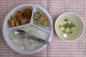 12月19日(金)給食・おやつ 公開済み: 2025年12月19日更新: 2025年12月19日作成者: ことね保育園カテゴリー: 調理室から 給食🍚🍴 ☆ごはん ☆タンドリーチキン ☆切干大根の胡麻酢和え ☆スープ(豆腐、万能ねぎ) 味付けが好評で、おかわりもピッカピカになりました😋💖 カレー風味が食欲を刺激してくれ、たくさん食べてくれました~🤗🎶✨ おやつ(🕒✨15時) ☆お誕生ケーキ ☆麦茶 12月のお誕生会✨✨ 今年もたくさんのお友だちをお祝いしましたね🤗🎶✨ 元気いっぱいすくすく大きくなってね🤩 関連記事 2月10日(月)給食 給食🍚🍴 ☆わかめごはん ☆ハンバーグ ☆ひじきサラダ ☆すまし汁(厚揚げ、小松菜) ジューシーなハンバーグ✨✨ みんなのお気に入りです🤗&# […] 公開済み: 2025年2月12日更新: 2025年2月12日作成者: ことね保育園カテゴリー: 調理室から 3月29日(水)給食・おやつ 給食🍚🍴 ☆ごはん ☆豚肉のカレー風味 ☆ポテトフレンチサラダ ☆スープ(高野豆腐、玉ねぎ) ほんのりスパイシーな炒め物が本日の主菜です😁🎶 ポテトフレン […] 公開済み: 2023年3月29日更新: 2023年3月29日作成者: ことね保育園カテゴリー: 調理室から 11月13日(水)給食・おやつ 給食🍚🍴 ☆ごはん ☆麻婆大根 ☆白菜とコーンのサラダ ☆みそ汁(かぼちゃ、青菜) コロコロ大根とひき肉がメインの麻婆大根✨✨ 下茹でした大根に味が染み込みg […] 公開済み: 2024年11月13日更新: 2024年11月13日作成者: ことね保育園カテゴリー: 調理室から