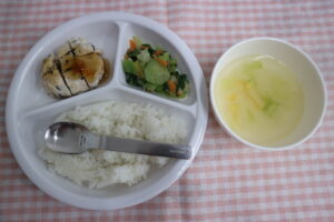 6月6日(火)給食・おやつ 給食🍚🍴 ☆ごはん ☆鶏肉のカレー漬け焼き ☆白菜の中華サラダ ☆スープ(厚揚げ、万能ねぎ) カレーの食欲を刺激する香りで、ごはんが進みます~😋🎶' […] 公開済み: 2023年6月6日更新: 2023年6月6日作成者: ことね保育園カテゴリー: 調理室から