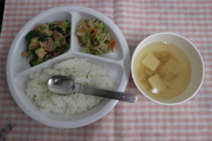 2月12日(木)給食・おやつ 公開済み: 2026年2月12日更新: 2026年2月12日作成者: ことね保育園カテゴリー: 調理室から 給食🍚🍴 ☆ごはん ☆鶏肉の味噌漬け焼き ☆切干大根ツナの和風サラダ ☆すまし汁(エノキ、高野豆腐) しっとりジューシーに焼き上がった鶏肉✨✨ とっても食べやすかったですよ~😝👏 おかわりのお皿もピカピカになって返ってきましたよ おやつ(🕒✨15時) ☆マカロニミートソース ☆麦茶 クルクルした可愛い形のマカロニを使用しました🤩✨ ミートソースがよ~く絡んでgood👍🎶 関連記事 12月13日(月)給食・おやつ 給食🍚🍴 ☆ごはん ☆豆腐のチャンプルー ☆白菜とツナの和え物 ☆すまし汁(キャベツ、油揚げ) 具材たっぷりの豆腐チャンプルー✨🎶 ビタミンやたんぱく質など […] 公開済み: 2021年12月13日更新: 2021年12月13日作成者: ことね保育園カテゴリー: 調理室から 10月28日(木)給食 給食🍚🍴 ☆ごはん ☆ミートローフ ☆白菜サラダ ☆スープ(エノキ、コーン) 鶏肉を使ったミートローフ✨🎶 豆腐やお野菜がたくさん入っていて、しっとり仕上が […] 公開済み: 2021年10月29日更新: 2021年10月29日作成者: ことね保育園カテゴリー: 調理室から 1月21日(月)給食・おやつ 給食🍚🍴 ✰人参ごはん ✰松風焼き ✰小松菜の煮浸し ✰すまし汁(厚揚げ、エノキ) 人参ごはんには塩と昆布だしの味が少しついているので人参が苦手な子でも完食していました&# […] 公開済み: 2019年1月21日更新: 2019年1月29日作成者: ことね保育園カテゴリー: 調理室から