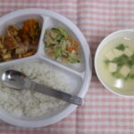 2月26日(月)給食 公開済み: 2024年2月27日更新: 2024年2月27日作成者: ことね保育園カテゴリー: 調理室から 給食🍚🍴 ☆ごはん ☆高野豆腐とひじきのうま煮 ☆かぼちゃサラダ ☆みそ汁(厚揚げ、万能ねぎ) 中華風うま煮🤗🎶✨ トロミを付けてひじきも食べやすくなりました‼ 栄養のバランス抜群👏 関連記事 3月24日(火)給食・おやつ 給食🍚🍴 ☆ごはん ☆鮭のパン粉焼き ☆ブロッコリーと豆腐のサラダ ☆スープ(白菜、エノキ) 水切りをした豆腐とたっぷりのブロッコリーを、ごま風味の和風ドレッシングで和えましたǹ […] 公開済み: 2020年3月24日更新: 2020年3月25日作成者: ことね保育園カテゴリー: 調理室から 4月12日(月)給食・おやつ 給食🍚🍴 ☆ごはん ☆カジキのトマトソースかけ ☆青菜炒め ☆スープ(大根、ニラ) トマトソースの赤が食欲をそそります😋🍅✨ 酸味を抑えて、 […] 公開済み: 2021年4月12日更新: 2021年4月12日作成者: ことね保育園カテゴリー: 調理室から 11月19日(火)給食・おやつ 給食🍚🍴 ☆ごはん ☆鶏肉の照り焼き ☆コールスローサラダ ☆みそ汁(大根、油揚げ) ひと口大より少し大きくにカットした鶏肉で、かみかみの練習! すぐにゴックンができないので、みんなよ~ […] 公開済み: 2019年11月19日更新: 2019年11月19日作成者: ことね保育園カテゴリー: 調理室から
