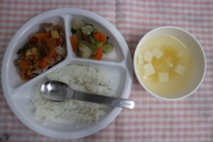 2月26日(木)給食・おやつ 公開済み: 2026年2月26日更新: 2026年2月26日作成者: ことね保育園カテゴリー: 調理室から 給食🍚🍴 ☆ごはん ☆豚肉のトマトソースかけ ☆大根とツナの煮物 ☆スープ(豆腐、コーン) 甘酸っぱいトマトソースをたっぷりかけた豚肉のトマトソースかけ✨✨ 優しい味付けの大根煮との相性がgood👍🎶✨でした😁🎶 たくさん食べてお腹もいっぱい~ おやつ(🕒✨15時) ☆わかめおにぎり ☆麦茶 磯の香りがお口いっぱいに広がります🤗🎶✨ 上手に持って大きなお口でパクッ😋 ごちそうさま~ 関連記事 8月20日(水)給食・おやつ 給食🍚🍴 ☆ごはん ☆鶏肉のオニオンソース ☆キャベツのごま和え ☆すまし汁(白菜、油揚げ) ごま和えはどんなお野菜でも美味しくしてくれます😋💖 今日はキ […] 公開済み: 2025年8月20日更新: 2025年8月20日作成者: ことね保育園カテゴリー: 調理室から 4月19日(金)給食・おやつ 給食🍚🍴 ☆ごはん ☆豚肉のトマトソースかけ ☆大根とツナの煮物 ☆スープ(豆腐、コーン) 甘酸っぱいトマトソースを絡めて🍅召し上がれ~😋🎶 […] 公開済み: 2024年4月19日更新: 2024年4月19日作成者: ことね保育園カテゴリー: 調理室から 5月26日(木)給食・おやつ 給食🍚🍴 ☆ごはん ☆チキンハンバーグ ☆人参しりしり ☆すまし汁(白菜、高野豆腐) ことね保育園オリジナルの人参しりしり🥕✨ 切干大根とツナ入りです&#x […] 公開済み: 2022年5月26日更新: 2022年5月26日作成者: ことね保育園カテゴリー: 調理室から
