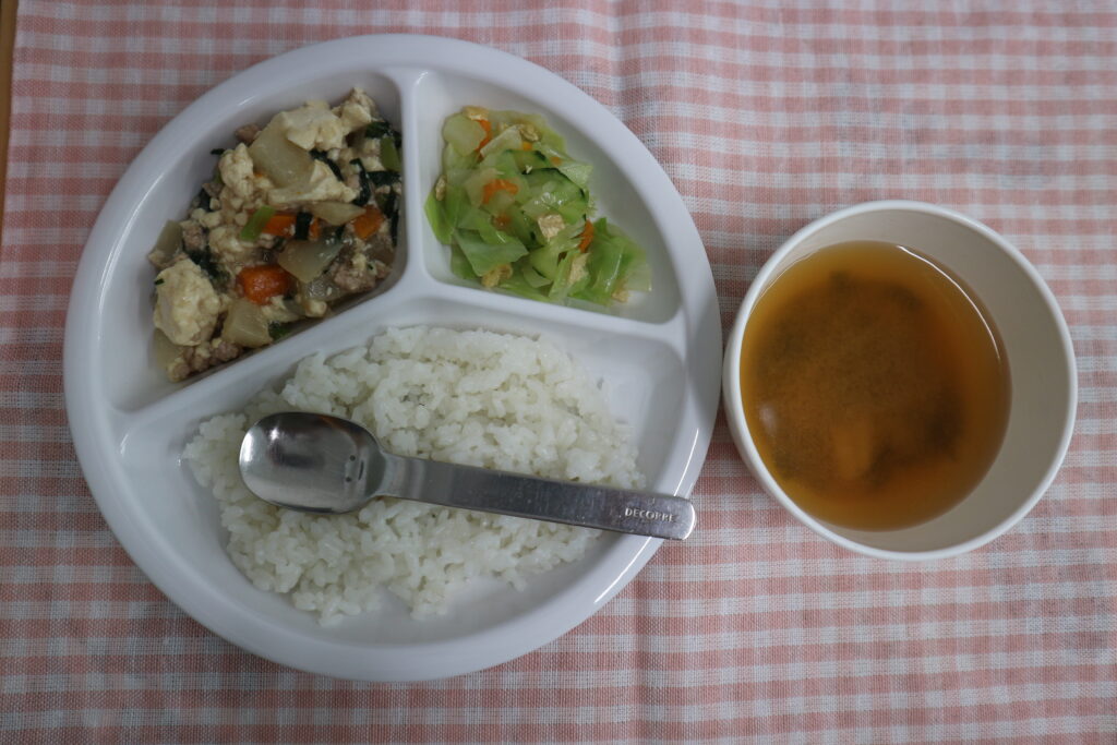 9月11日(木)給食・おやつ 公開済み: 2025年9月11日更新: 2025年9月11日作成者: ことね保育園カテゴリー: 調理室から 給食🍚🍴 ☆ごはん ☆麻婆大根 ☆キャベツの和風サラダ ☆みそ汁(高野豆腐、わかめ) 大根、豆腐共に下茹でしているので味がしっかりと入り、美味しい麻婆大根になりました😋💖 トロ~としているのでごはんにかけてもイイ感じ❣🤗💖✨ たくさん食べてくれましたよ~😝👏 おやつ(🕒✨15時) ☆青菜チャーハン ☆麦茶 ボリュームのある青菜チャーハン✨✨ お腹も大満足です‼ 大きなお口でパクッ😋と食べ進めていましたよ~ 関連記事 19 11月19日(月)給食・おやつ 給食🍚🍴 ☆ごはん ☆鶏肉の酢醤油煮 ☆ほうれん草ときのこの炒め物 ☆すまし汁(ごぼう、油揚げ) すまし汁にはかなで組が育てているはつかだいこんが入っています。 みんな探し […] 公開済み: 2018年11月19日更新: 2018年11月19日作成者: ことね保育園カテゴリー: 調理室から 2月3日(月)給食・おやつ 給食🍚🍴 ☆ごはん ☆松風焼き ☆フレンチポテトサラダ ☆すまし汁(小松菜、エノキ) ソースを隠し味に使ったポテトサラダです😋✨ サッパリしていて美味しい~ […] 公開済み: 2025年2月3日更新: 2025年2月3日作成者: ことね保育園カテゴリー: 調理室から 09 4月9日(火)給食・おやつ 給食🍚🍴 ☆ごはん ☆松風焼き ☆ポテトフレンチサラダ ☆すまし汁(エノキ、小松菜) しっとり松風焼き~🤗🎶✨ みそ味がごはんに良く合います […] 公開済み: 2024年4月9日更新: 2024年4月9日作成者: ことね保育園カテゴリー: 調理室から