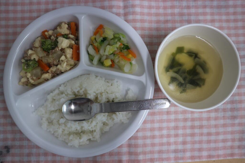 10月8日(水)給食・おやつ 公開済み: 2025年10月8日更新: 2025年10月8日作成者: ことね保育園カテゴリー: 調理室から 給食🍚🍴 ☆ごはん ☆麻婆大根 ☆白菜とコーンのサラダ ☆スープ(玉ねぎ、わかめ) 白菜のシャキシャキ食感が美味しいサラダ🥗✨ おかわりも進みました~🤩✨ お野菜が好きな子が多いことね保育園です🤗🎶✨ おやつ(🕒✨15時) ☆青菜チャーハン ☆麦茶 ひびき組さんが育てたピーマンを入れて、青菜チャーハンを作りましたよ~😝👏 子どもたちもピーマンを探しながら、あっという間に完食~🤗🎶✨ 柔らかく、香りの良いピーマンでした🥰 関連記事 7月21日(金)給食・おやつ 給食🍚🍴 ☆ごはん ☆鶏肉のパン粉焼き ☆かぼちゃサラダ ☆すまし汁(白菜、人参) パン粉のザクッと感が美味しいパン粉焼き~✨ 子どもたちも喜んで食べていて、嬉しかったです […] 公開済み: 2023年7月21日更新: 2023年7月21日作成者: ことね保育園カテゴリー: 調理室から 7月5日(金)給食・おやつ 給食🍚🍴 ☆ごはん ☆肉団子のトマト煮 ☆根菜のきんぴら風 ☆すまし汁(白菜、人参) トマトの酸味を抑え、甘めに作りました😊 赤・黄色・緑など食欲が沸くビタミンカラー&# […] 公開済み: 2019年7月5日更新: 2019年7月5日作成者: ことね保育園カテゴリー: 調理室から 9月8日(金)給食・おやつ 給食🍚🍴 ☆ごはん ☆鶏肉のオニオンソース ☆野菜のコンソメ煮 ☆すまし汁(エノキ、人参) サツマイモが入った野菜のコンソメ煮🍠✨ ホクっ!と美味しい食感で […] 公開済み: 2023年9月8日更新: 2023年9月8日作成者: ことね保育園カテゴリー: 調理室から