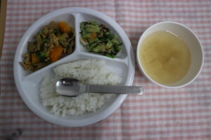 3月11日(水)給食・おやつ 公開済み: 2026年3月11日更新: 2026年3月11日作成者: ことね保育園カテゴリー: 調理室から 給食🍚🍴 ☆ごはん ☆豚肉のカレー炒め ☆ひじきサラダ ☆すまし汁(高野豆腐、玉ねぎ) おやつ(🕒✨15時) ☆米粉ココアケーキ ☆麦茶 関連記事 3月26日(金)給食・おやつ 給食🍚🍴 ☆ごはん ☆豆腐チキンハンバーグ ☆人参しりしり ☆すまし汁(白菜、ニラ) 子供たちの好きなハンバーグ🤗🎶 今日は、豆腐とチキンのハンバーグです […] 公開済み: 2021年3月26日更新: 2021年3月26日作成者: ことね保育園カテゴリー: 調理室から 10月19日(月)給食・おやつ 給食🍚🍴 ☆ごはん ☆豆腐のそぼろ煮 ☆胡麻和え ☆みそ汁(大根、麩) プルンっとした豆腐がたっぷりの主菜😋 とりひき肉のそぼろとドッキングして、ボリュームup' […] 公開済み: 2020年10月19日更新: 2020年10月19日作成者: ことね保育園カテゴリー: 調理室から 4月17日(木)給食・おやつ 給食🍚🍴 ☆ごはん ☆鶏肉のパン粉焼き ☆切干大根とツナのサラダ ☆みそ汁(かぼちゃ、油揚げ) サクッと食感のパン粉焼き✨✨ しっかりと嚙んで食べ進めていまし […] 公開済み: 2025年4月17日更新: 2025年4月17日作成者: ことね保育園カテゴリー: 調理室から