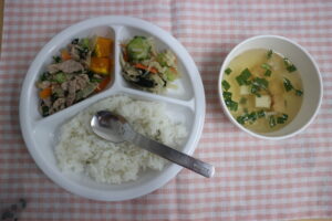 3月18日(水)給食・おやつ 公開済み: 2026年3月18日更新: 2026年3月18日作成者: ことね保育園カテゴリー: 調理室から 給食🍚🍴 ☆ごはん ☆豚肉のプルコギ風 ☆切干大根と海苔のサラダ ☆スープ(厚揚げ、ニラ、エノキ) おやつ(🕒✨15時) ☆わかめごはん ☆麦茶 関連記事 6月10日(火)給食・おやつ 給食🍚🍴 ☆ごはん ☆カレー肉豆腐 ☆大根とじゃこのサラダ ☆みそ汁(かぼちゃ、さつま芋、油揚げ) みずみずしい大根の和風サラダ~😁 サッパリしていて、肉豆腐との相性がg […] 公開済み: 2025年6月10日更新: 2025年6月10日作成者: ことね保育園カテゴリー: 調理室から 11月2日(水)給食・おやつ 給食🍚🍴 ☆ごはん ☆鶏肉の照り煮 ☆ひじきとツナのサラダ ☆みそ汁(かぼちゃ、玉ねぎ) ケチャップ風味のソースに焼いた鶏肉を絡めて作る、照り煮です😋 醬油を隠し味で加え […] 公開済み: 2022年11月2日更新: 2022年11月2日作成者: ことね保育園カテゴリー: 調理室から 06 12月6日(木)給食・おやつ 給食🍚 ☆ご飯 ☆肉じゃが ☆キャベツのお浸し ☆みそ汁(しめじ・油揚げ) キャベツは、大根やブロッコリーと同じアブラナ科の仲間で、淡色野菜の中でもトップクラスに入るほどビタミンCが豊富な葉 […] 公開済み: 2018年12月6日更新: 2018年12月7日作成者: ことね保育園カテゴリー: ことねブログ, 調理室から