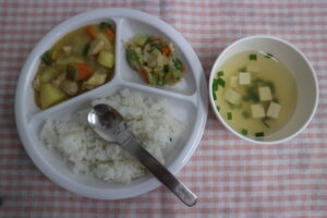 4月13日(月)給食・おやつ 公開済み: 2026年4月13日更新: 2026年4月13日作成者: ことね保育園カテゴリー: 調理室から 給食🍚🍴 ☆ごはん ☆鶏肉のlコーンクリーム煮 ☆油揚げ入りサラダ ☆みそ汁(豆腐、ニラ) 給食🍚🍴 ☆わかめおにぎり ☆麦茶 関連記事 1月31日(木)給食・おやつ 給食🍚🍴 ☆ごはん ☆豆腐ミートローフ ☆白菜の洋浸し ☆スープ(ほうれん草、玉ねぎ) ミートローフには豆腐が入っているのでふんわり柔らかくなっています。 カレー味なのでみん […] 公開済み: 2019年1月31日更新: 2019年1月31日作成者: ことね保育園カテゴリー: 調理室から 2月15日(金)給食・おやつ 給食🍚🍴 ☆ごはん ☆豆腐ステーキおろしあん ☆小松菜ソテー ☆みそ汁(かぼちゃ、玉ねぎ) 豆腐ステーキおろしあんは甘く、かつおだしがしっかりついているので豆腐やご飯との相 […] 公開済み: 2019年2月15日更新: 2019年2月15日作成者: ことね保育園カテゴリー: 調理室から 9月12日(木)給食・おやつ 給食🍚🍴 ☆ごはん ☆豚かぼちゃ ☆白菜の中華サラダ ☆みそ汁(厚揚げ、にら) かぼちゃがトロッと煮あがりました~😁👍 ひき肉によく絡んで食べやすかったで […] 公開済み: 2021年8月12日更新: 2021年8月12日作成者: ことね保育園カテゴリー: 調理室から