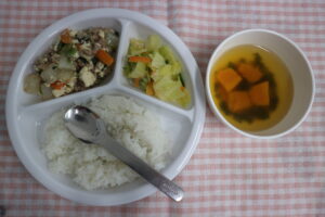 4月16日(木)給食・おやつ 公開済み: 2026年4月16日更新: 2026年4月16日作成者: ことね保育園カテゴリー: 調理室から 給食🍚🍴 ☆ごはん ☆麻婆大根 ☆キャベツの和風サラダ ☆スープ(かぼちゃ、わかめ) おやつ(🕒✨15時) ☆ミルクシュガートースト ☆麦茶 関連記事 1月24日(金)給食・おやつ 給食🍚🍴 ☆ごはん ☆ひじきつくね ☆青菜炒め ☆スープ(白菜、コーン) 今日の青菜は小松菜です! カルシウム豊富な小松菜は積極的に食べたい食材です😋✨ […] 公開済み: 2025年1月24日更新: 2025年1月24日作成者: ことね保育園カテゴリー: 調理室から 20 9月20日(木)給食献立 ☆炊き込みごはん ☆鶏肉の照り焼き ☆煮浸し ☆みそ汁(豆腐、かぼちゃ) 「炊き込みごはんの食べ進みがよく、おかわりをたくさんしました🍚 みそ汁のかぼちゃも甘みがあり、きれいに完食♪」 &nb […] 公開済み: 2018年9月20日更新: 2018年9月20日作成者: ことね保育園カテゴリー: 調理室から 6月27日(木)給食・おやつ 給食🍚🍴 ☆ごはん ☆豆腐のうま煮 ☆かばちゃサラダ ☆すまし汁(玉ねぎ、小松菜) 今日の給食は、栄養満点のヘルシーメニューです😄 豆腐と野菜がいっぱいのうま煮 […] 公開済み: 2019年6月27日更新: 2019年6月27日作成者: ことね保育園カテゴリー: 調理室から