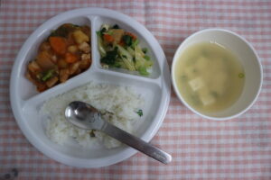 6月5日(木)給食・おやつ 給食🍚🍴 ☆ごはん ☆豚肉の生姜焼き ☆小松菜のしょうゆフレンチサラダ ☆スープ(エノキ、コーン) 生姜パワーで豚肉が柔らかく仕上がり、子どもたちも食べやすかったようです😁 […] 公開済み: 2025年6月5日更新: 2025年6月5日作成者: ことね保育園カテゴリー: 調理室から