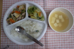 4月20日(月)給食・おやつ 公開済み: 2026年4月20日更新: 2026年4月20日作成者: ことね保育園カテゴリー: 調理室から 給食🍚🍴 ☆ごはん ☆豚すき煮 ☆磯和え ☆みそ汁(豆腐、エノキ) おやつ(🕒✨15時) ☆きな粉トースト ☆麦茶 関連記事 5月7日(火)給食・おやつ 給食🍚🍴 ☆ごはん ☆和風ハンバーグ ☆さつまいもとレーズンの甘煮 ☆みそ汁(白菜、人参) 子ども達が食べやすい様に、和風ハンバーグのおろしに手を加えあんかけ風にしました✨ […] 公開済み: 2019年5月7日更新: 2019年5月7日作成者: ことね保育園カテゴリー: 調理室から 6月6日(火)給食・おやつ 給食🍚🍴 ☆ごはん ☆鶏肉のカレー漬け焼き ☆白菜の中華サラダ ☆スープ(厚揚げ、万能ねぎ) カレーの食欲を刺激する香りで、ごはんが進みます~😋🎶' […] 公開済み: 2023年6月6日更新: 2023年6月6日作成者: ことね保育園カテゴリー: 調理室から 1月14日(金)給食・おやつ 給食🍚🍴 ☆ごはん ☆ポークビーンズ ☆白菜サラダ ☆スープ(小松菜、玉ねぎ) パクッ😋と食べる子どもたちの顔がたくさん❣❣❣ […] 公開済み: 2022年1月14日更新: 2022年1月14日作成者: ことね保育園カテゴリー: 調理室から