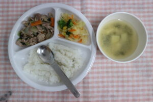 4月22日(水)給食・おやつ 公開済み: 2026年4月22日更新: 2026年4月22日作成者: ことね保育園カテゴリー: 調理室から 給食🍚🍴 ☆ごはん ☆豚肉のプルコギ風 ☆キャベツとブロッコリーの中華サラダ ☆みそ汁(じゃがいも、わかめ) おやつ(🕒✨15時) ☆麩ラスク ☆麦茶 関連記事 11月29日(月)給食・おやつ 給食🍚🍴 ☆ごはん ☆鶏肉の照り焼き ☆洋浸し ☆すまし汁(かぼちゃ、豆腐) 生姜風味の下味を付けてオーブンで焼いた照り焼きです🍗✨✨ ジュー […] 公開済み: 2021年11月29日更新: 2021年11月29日作成者: ことね保育園カテゴリー: 調理室から 28 9月28日(金)給食献立 ✰ごはん ✰豆腐の五目あん ✰豚じゃが ✰みそ汁(かぼちゃ、茄子) ✰✰大根のスティック 本日の写真は0歳のねいろ組のご飯です。 ご飯は棒状にして持ちながら美味しそうに食べています🍴 担任の先生と栄養士の先 […] 公開済み: 2018年9月28日更新: 2018年9月28日作成者: ことね保育園カテゴリー: 調理室から 1月21日(木)給食・おやつ 給食🍚🍴 ☆ごはん ☆鶏すき煮 ☆ジャーマンポテト風 ☆みそ汁(キャベツ、ニラ) 旬の白菜を使った鶏すき煮✨ 豆腐も入っているんで白菜との相性もバッチリ🤗&#x […] 公開済み: 2021年1月21日更新: 2021年1月21日作成者: ことね保育園カテゴリー: 調理室から