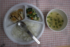 4月27日(月)給食・おやつ 公開済み: 2026年4月27日更新: 2026年4月27日作成者: ことね保育園カテゴリー: 調理室から 給食🍚🍴 ☆ごはん ☆野菜つくね ☆青菜煮びたし ☆スープ(大根、ニラ) おやつ(🕒✨15時) ☆鮭ごまおにぎり ☆麦茶 関連記事 1月18日(月)給食・おやつ 給食🍚🍴 ☆ごはん ☆豚かぼちゃ ☆白菜の和風サラダ ☆みそ汁(豆腐、わかめ) 白菜たっぷりの和風サラダ🥗✨ 葉っぱにある黒斑はポリフェノールなので、問題は […] 公開済み: 2021年1月18日更新: 2021年1月18日作成者: ことね保育園カテゴリー: 調理室から 5月30日(金)給食・おやつ 給食🍚🍴 ☆ごはん ☆ポークビーンズ ☆白菜とレーズンのサラダ ☆スープ(豆腐、小松菜) 畑の肉…大豆をたくさん食べられるポークビーンズですよ~😝👏 粗く […] 公開済み: 2025年5月30日更新: 2025年5月30日作成者: ことね保育園カテゴリー: 調理室から 4月26日(月)給食・おやつ 給食🍚🍴 ☆ごはん ☆ポークビーンズ ☆コールスローサラダ ☆みそ汁(小松菜、エノキ) じゃがいもが入った、ボリュームのあるポークビーンズ🤩✨✨ […] 公開済み: 2021年4月26日更新: 2021年4月26日作成者: ことね保育園カテゴリー: 調理室から