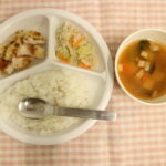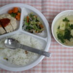 給食🍚🍴 ☆ごはん ☆鶏肉のごまみそ焼き ☆もやしとツナのサラダ ☆スープ(白菜、人参) プチプチとごまの食感がアクセントになっていて美味しかったね😋💖 […]